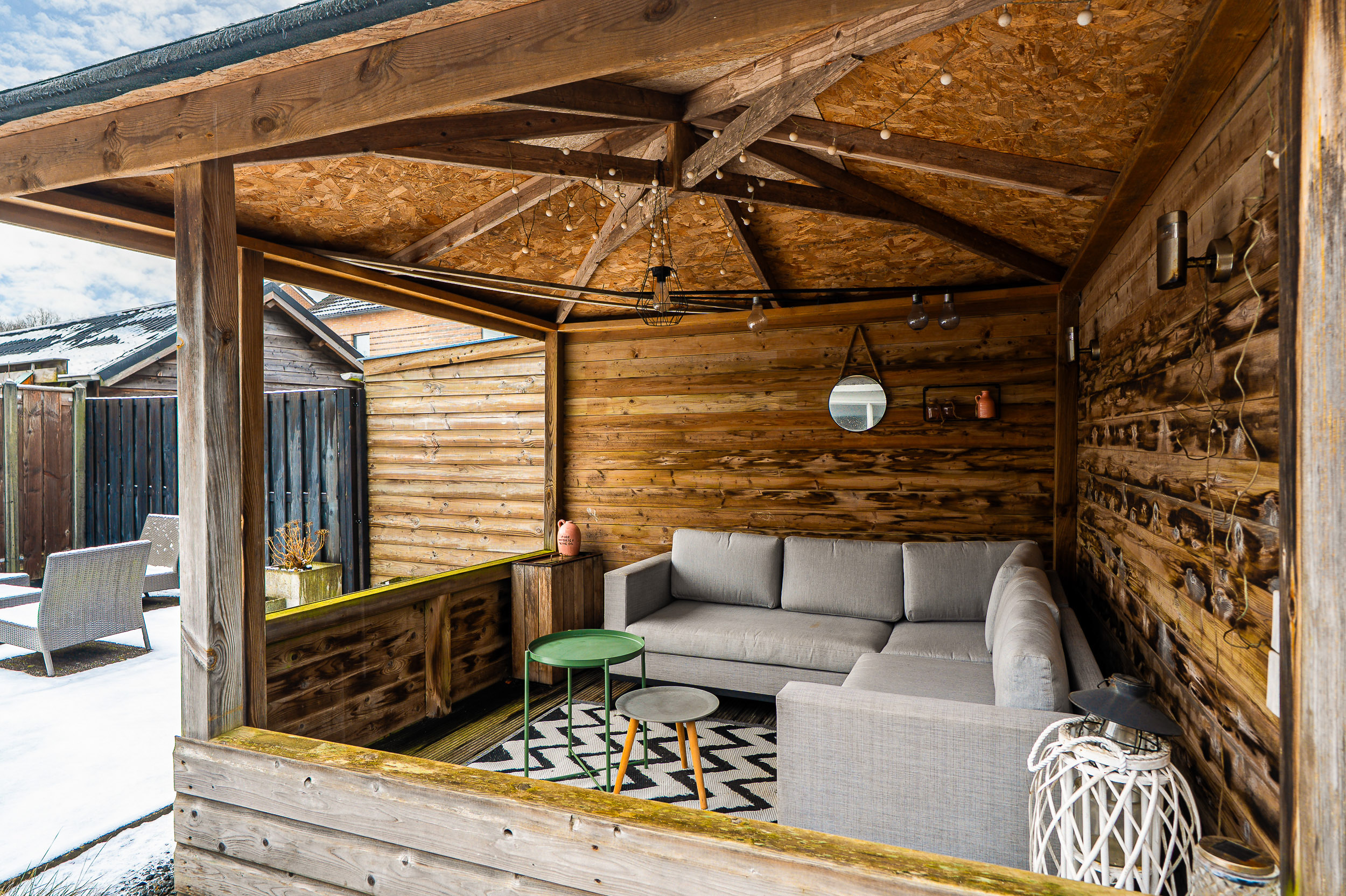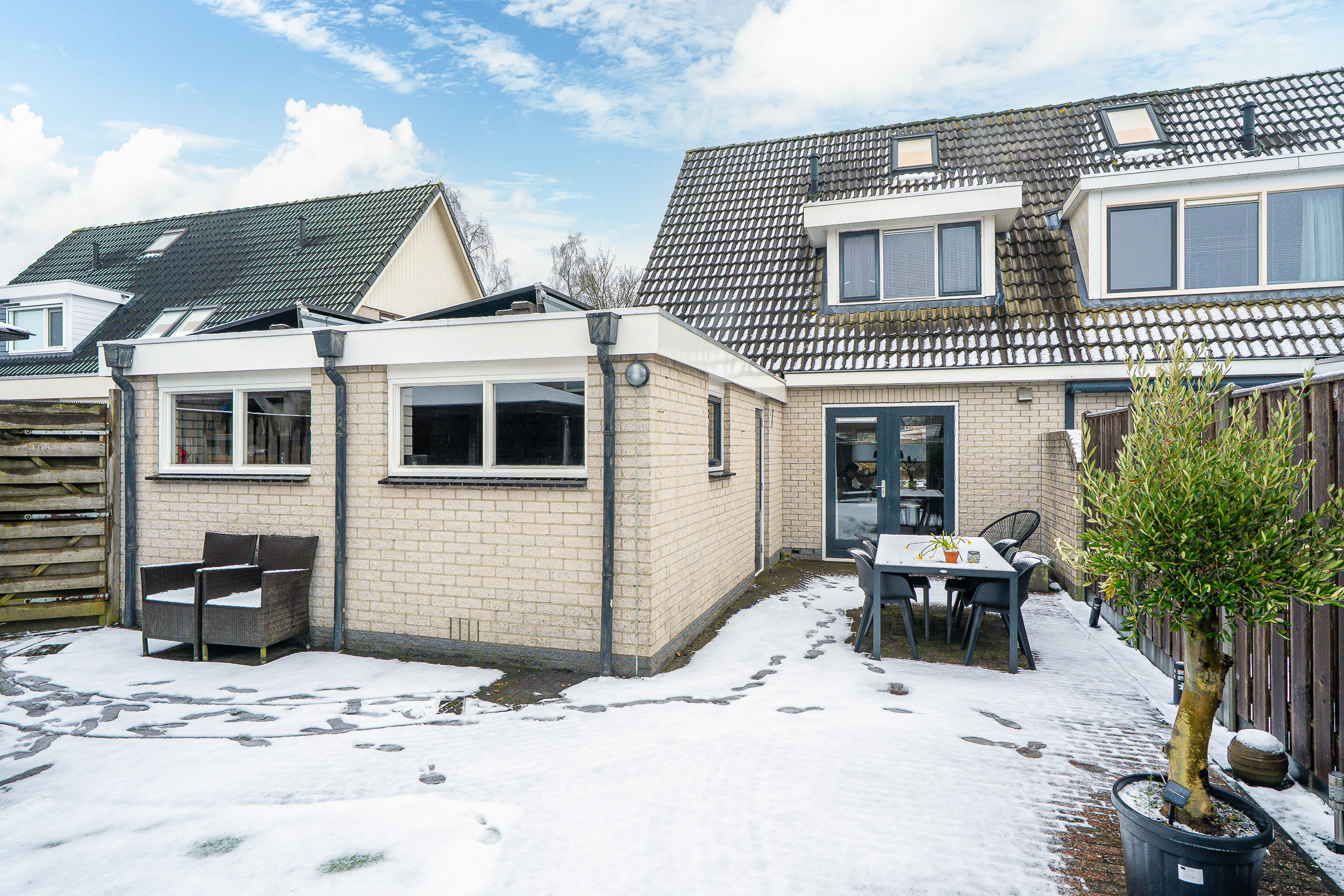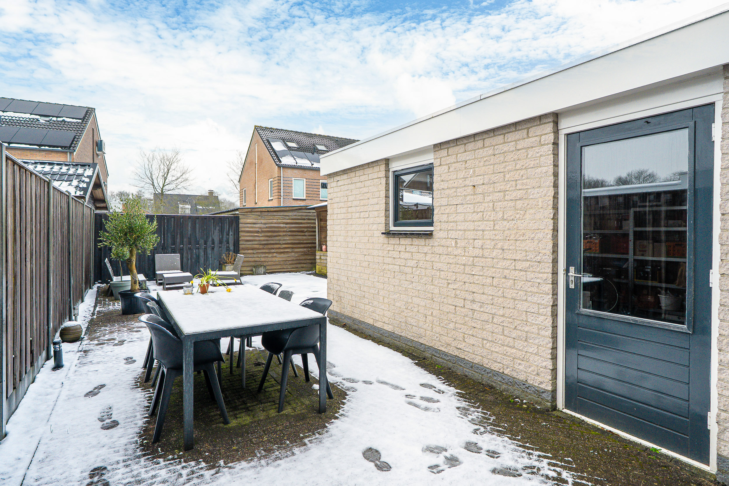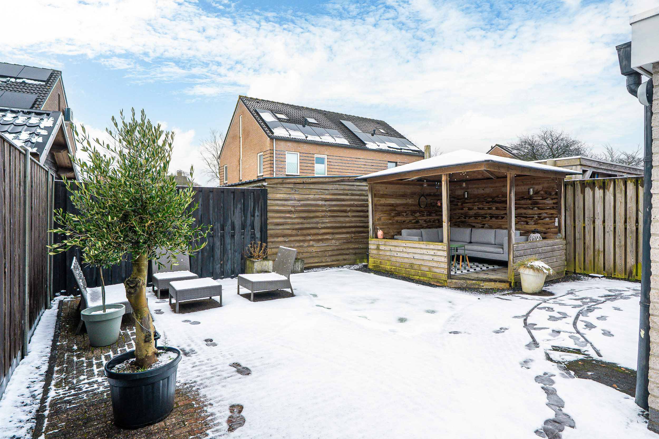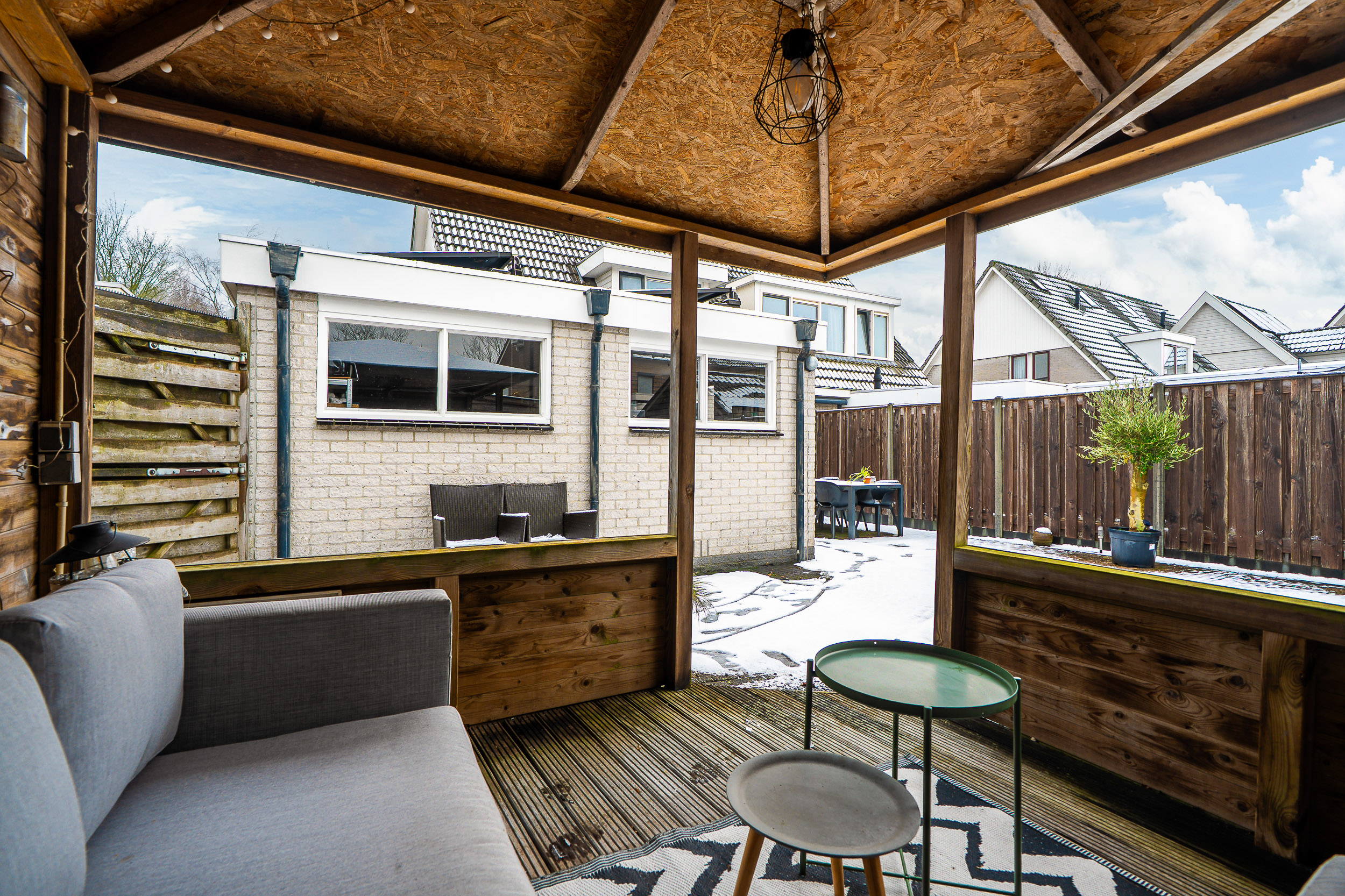 De achtertuin is onderhoudsvriendelijk aangelegd en biedt volop privacy. Onder de overkapping zit je al vroeg in het voorjaar én tot laat in het najaar comfortabel buiten. Of je nu rustig de dag begint met een kop koffie in de zon of vrienden uitnodigt voor een lange zomeravond, hier kan het allemaal.