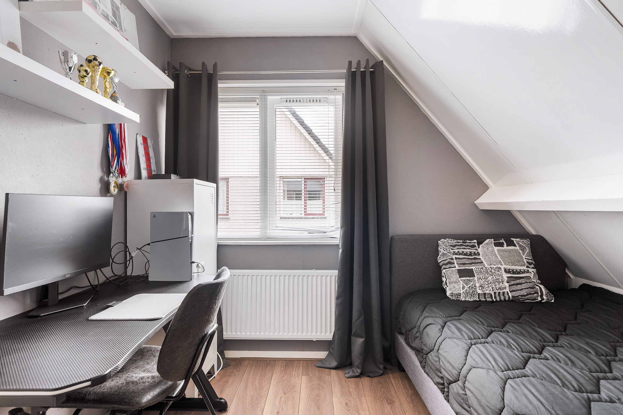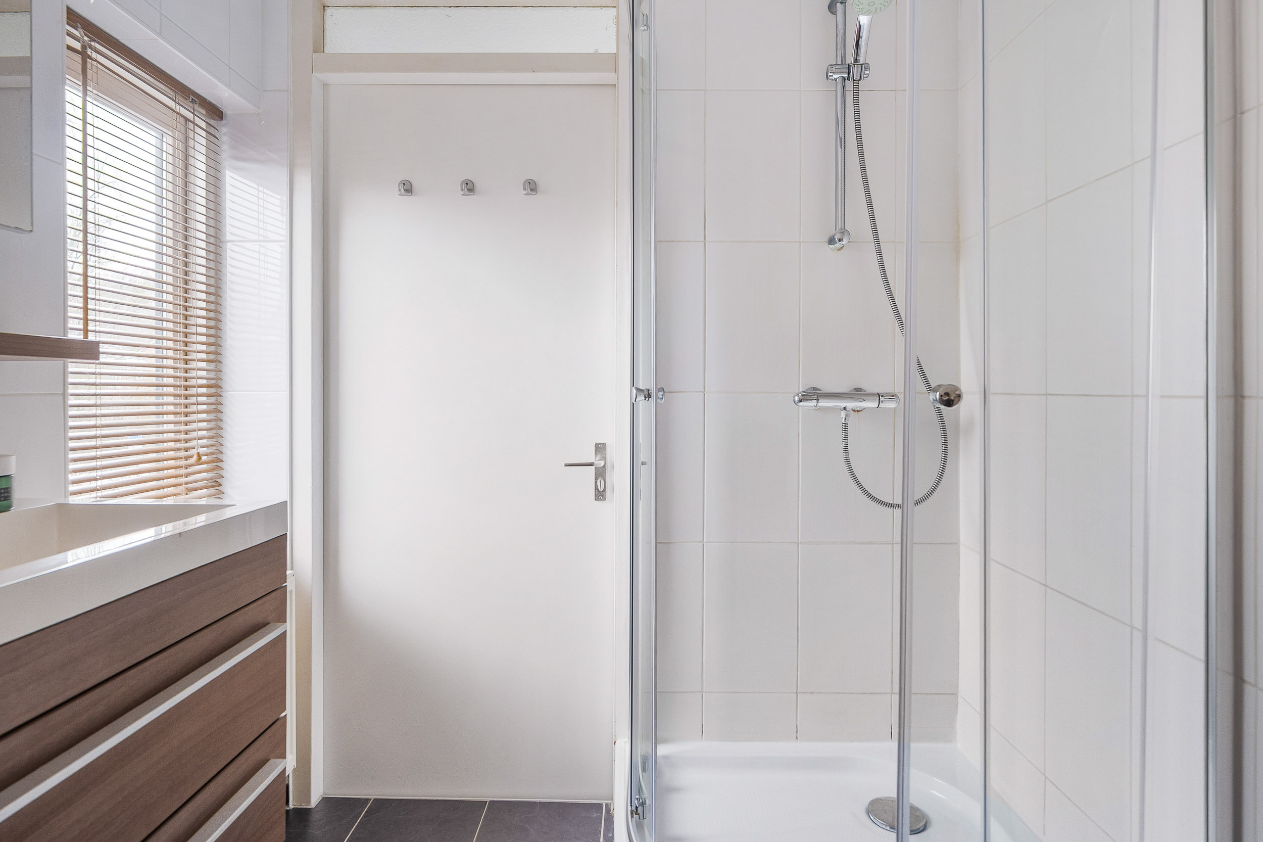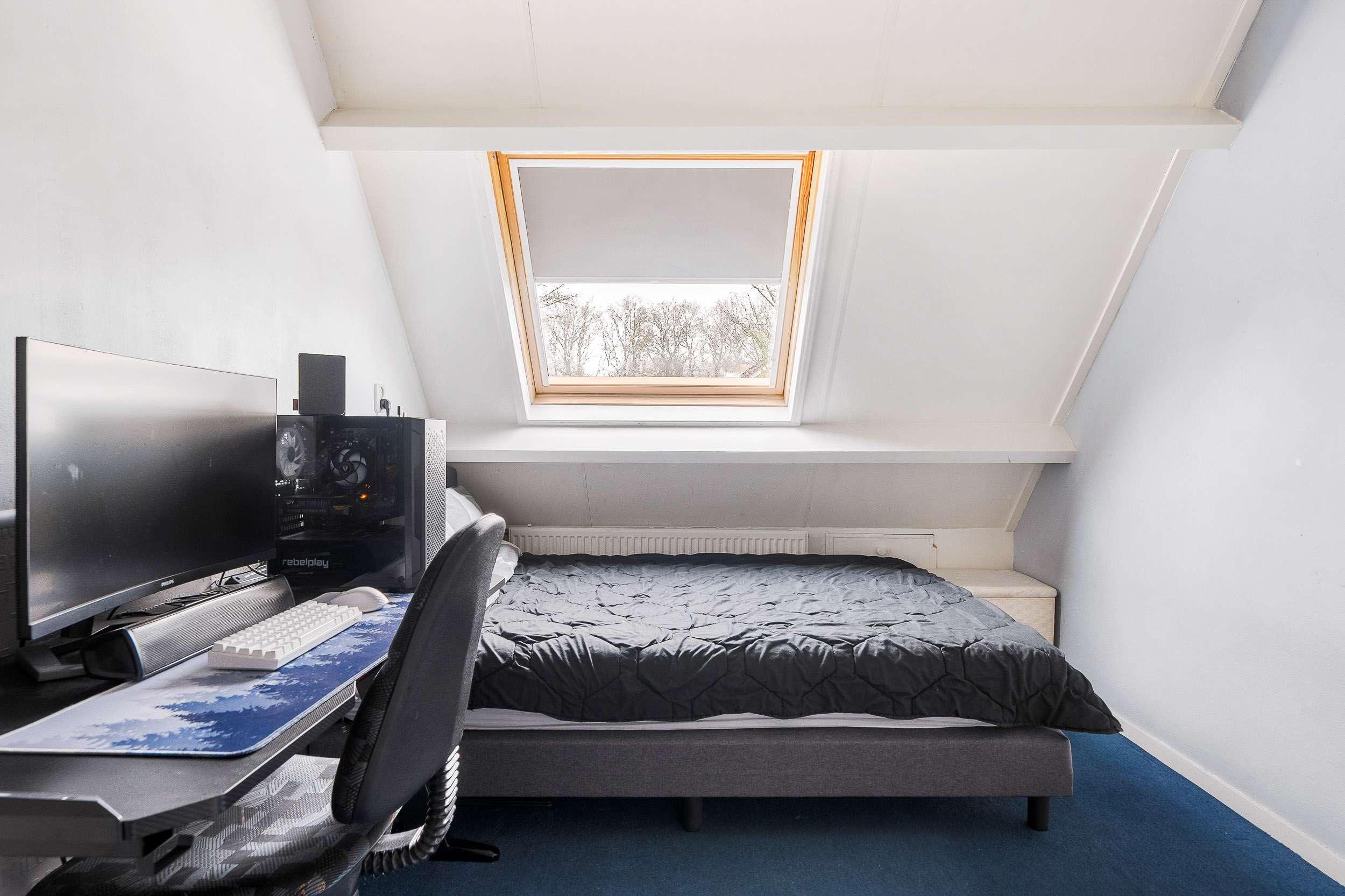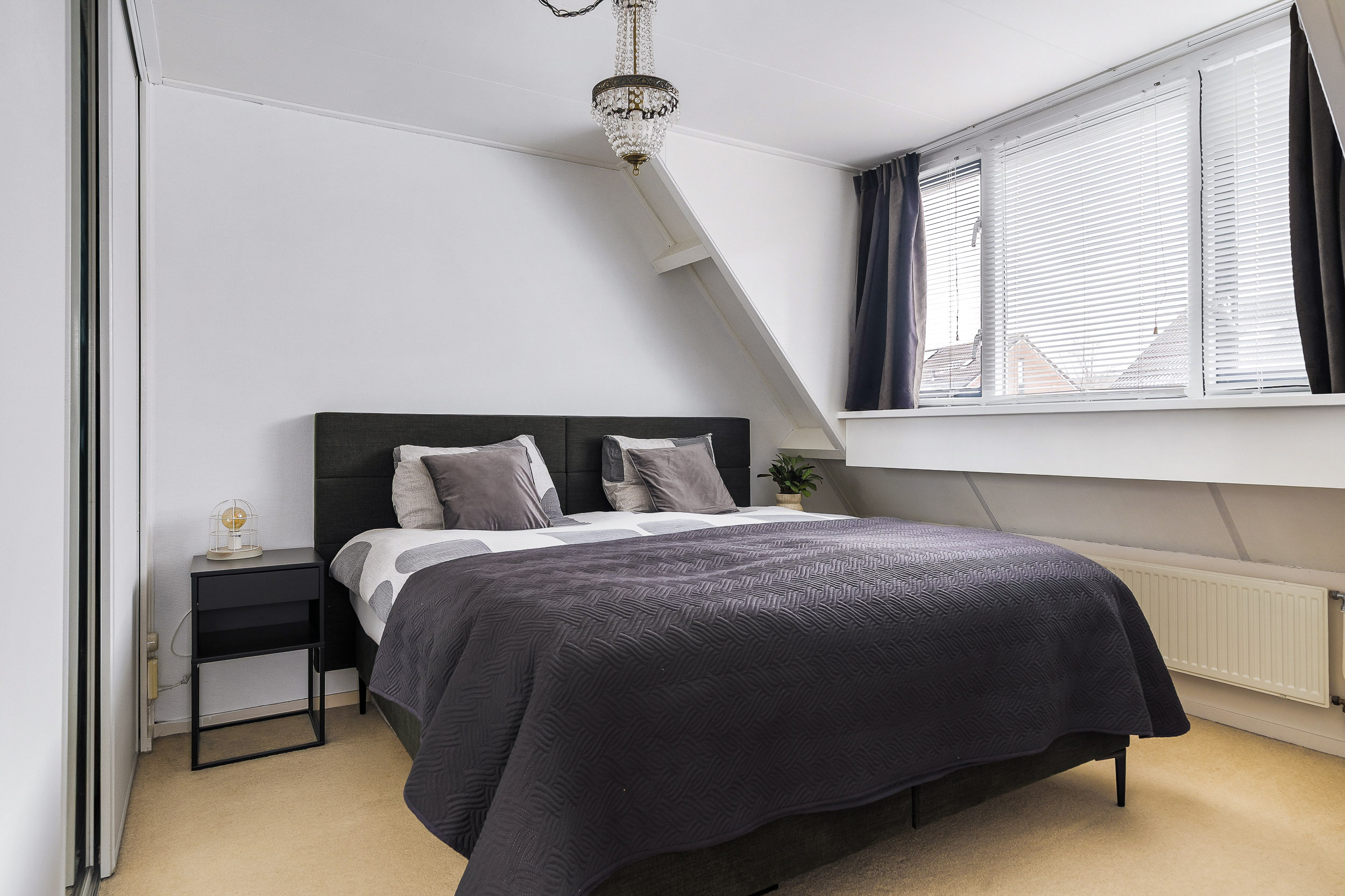 Op de eerste verdieping vind je meerdere slaapkamers van goed formaat. Ideaal voor een gezin, een thuiswerkplek of een hobbykamer. De badkamer is modern en compleet ingericht met een inloopdouche, wastafelmeubel en toilet. Alles is netjes afgewerkt, waardoor je hier zonder grote aanpassingen kunt starten.