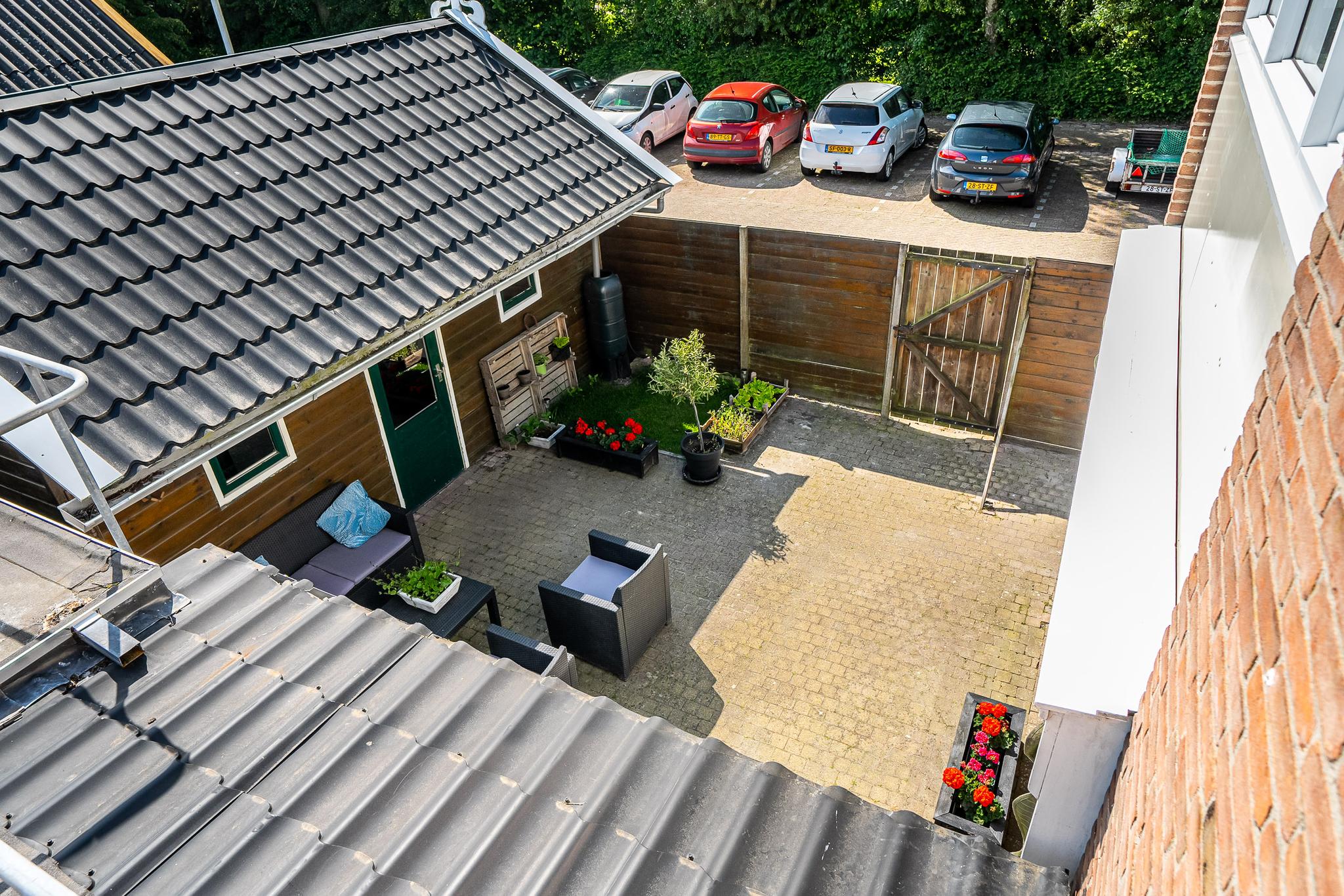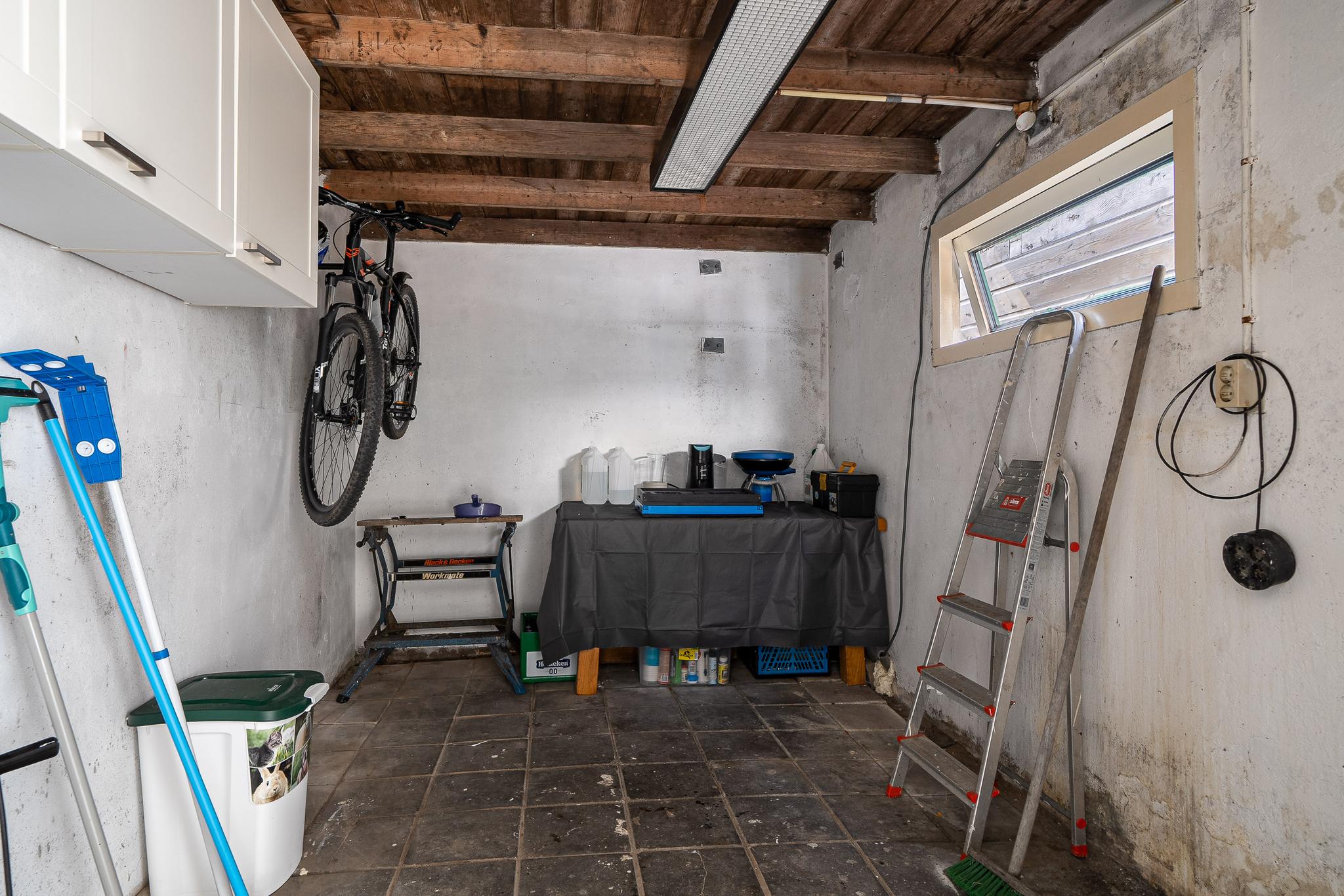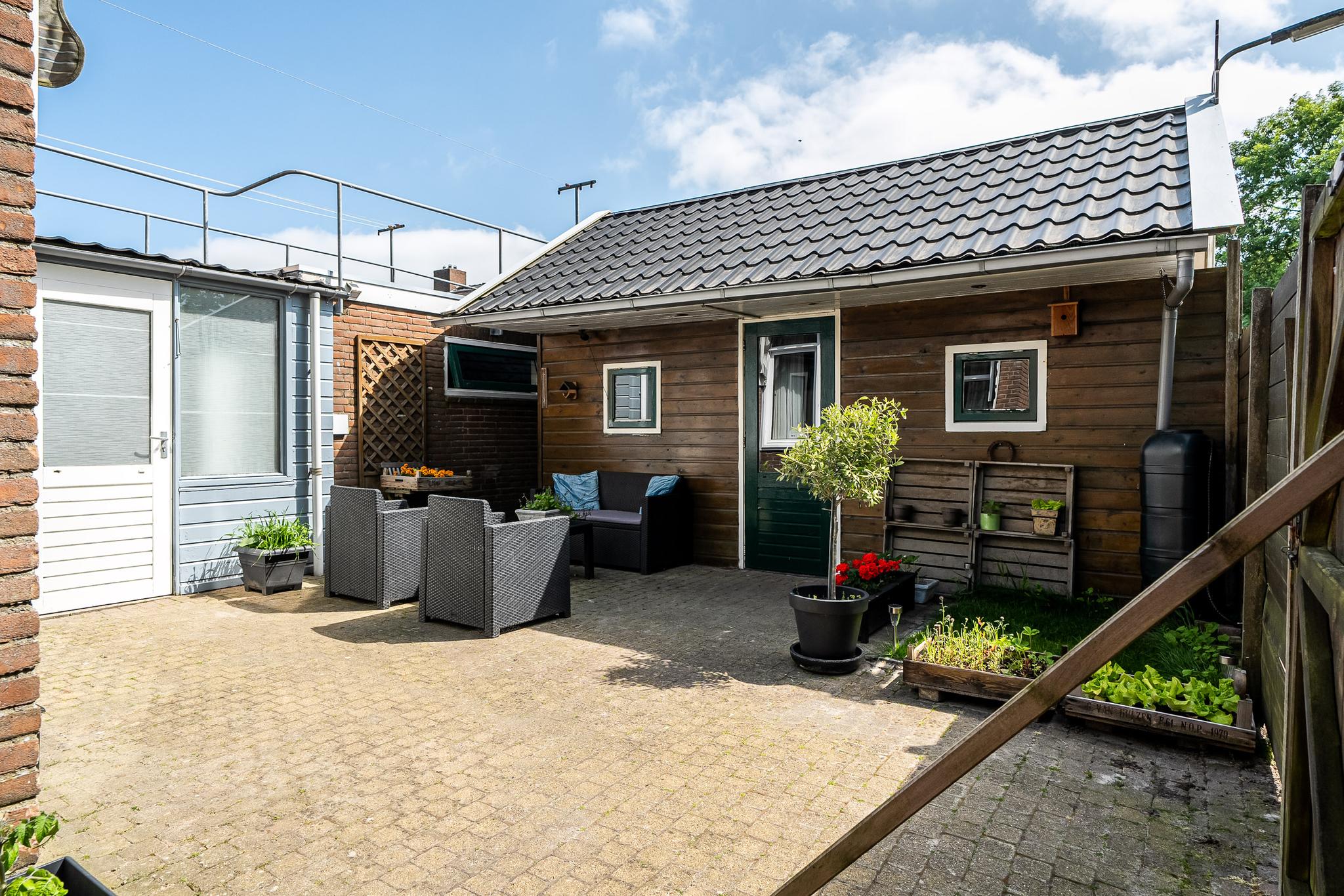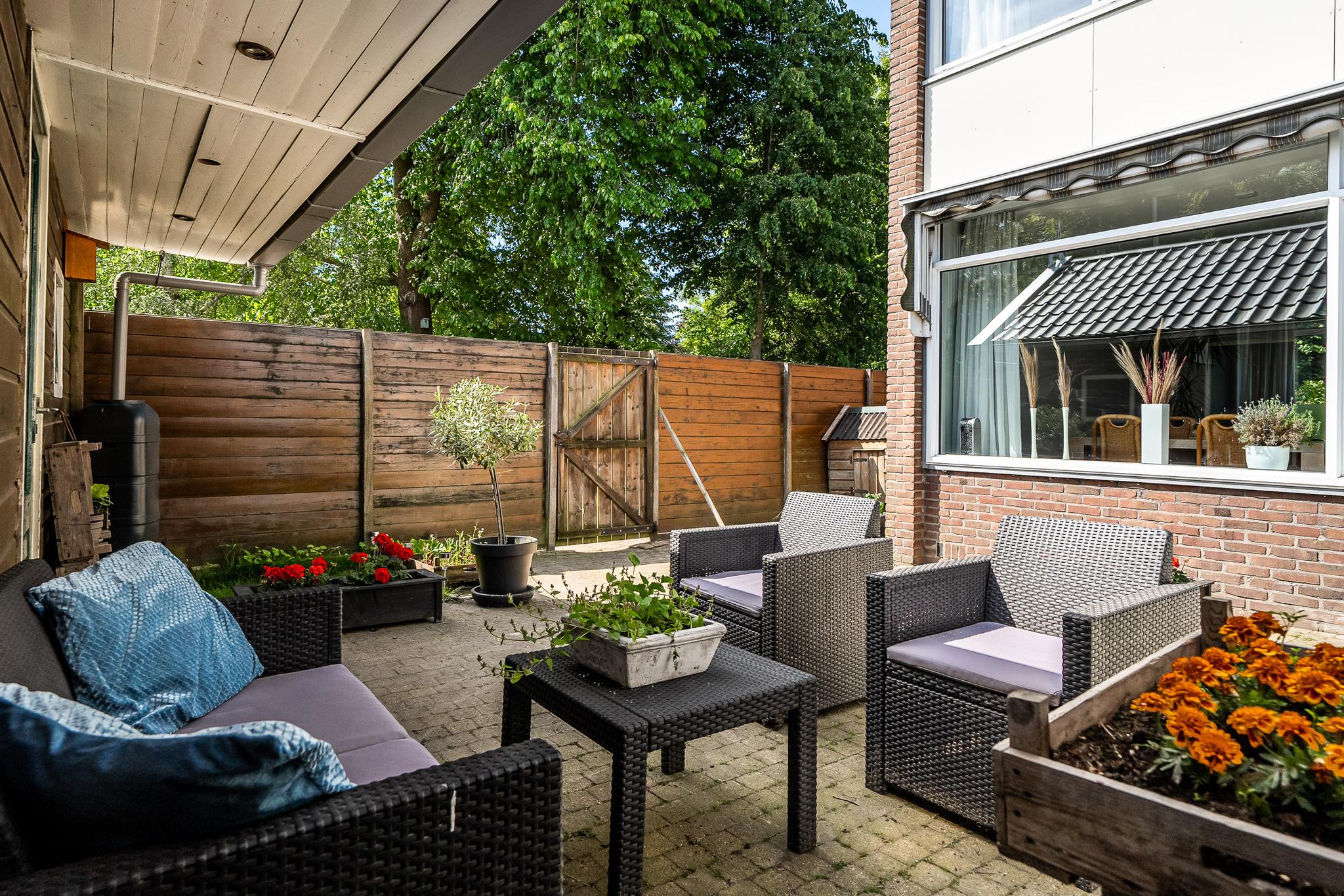 Tuin: nette onderhoudsarme tuin met veel privacy. De houten garage is gemakkelijk te bereiken en heeft een oppervlakte van ca. 17m²