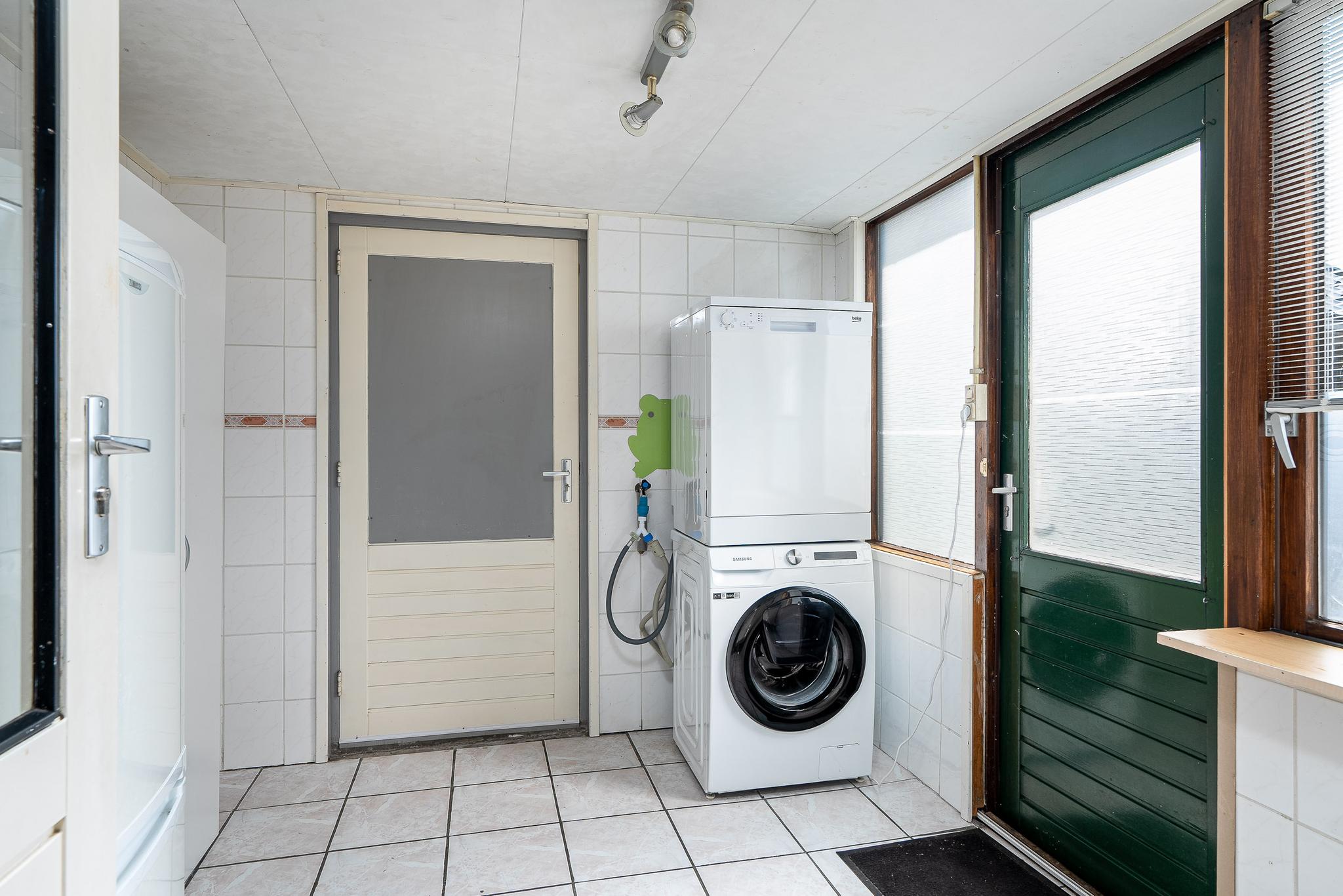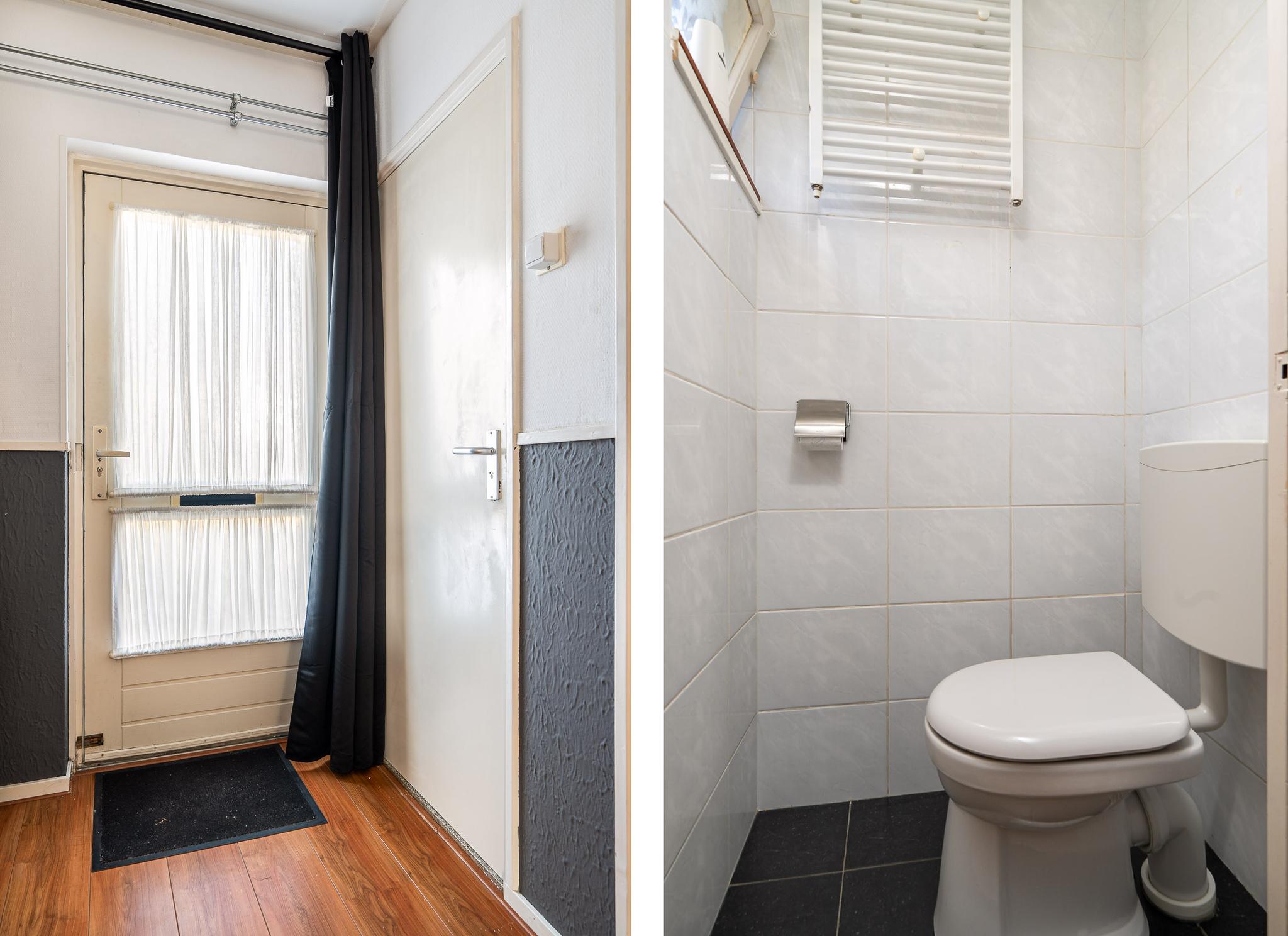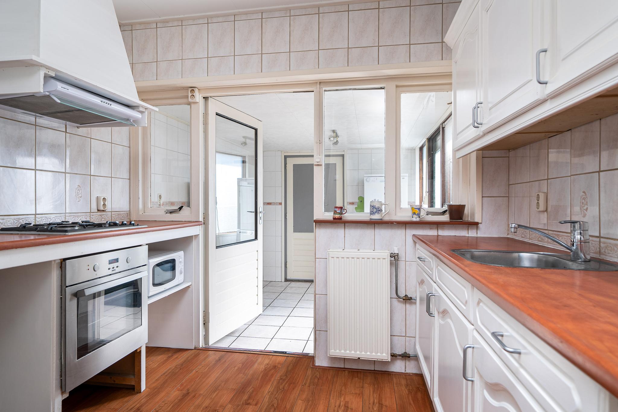 Indeling begane grond: Entree, hal met toilet, meterkast, bergkast en trapopgang, ruime woonkamer met veel natuurlijk lichtinval, dichte keuken voorzien van inbouwapparatuur, bijkeuken met achter-entree en toegang tot de aangebouwde berging.