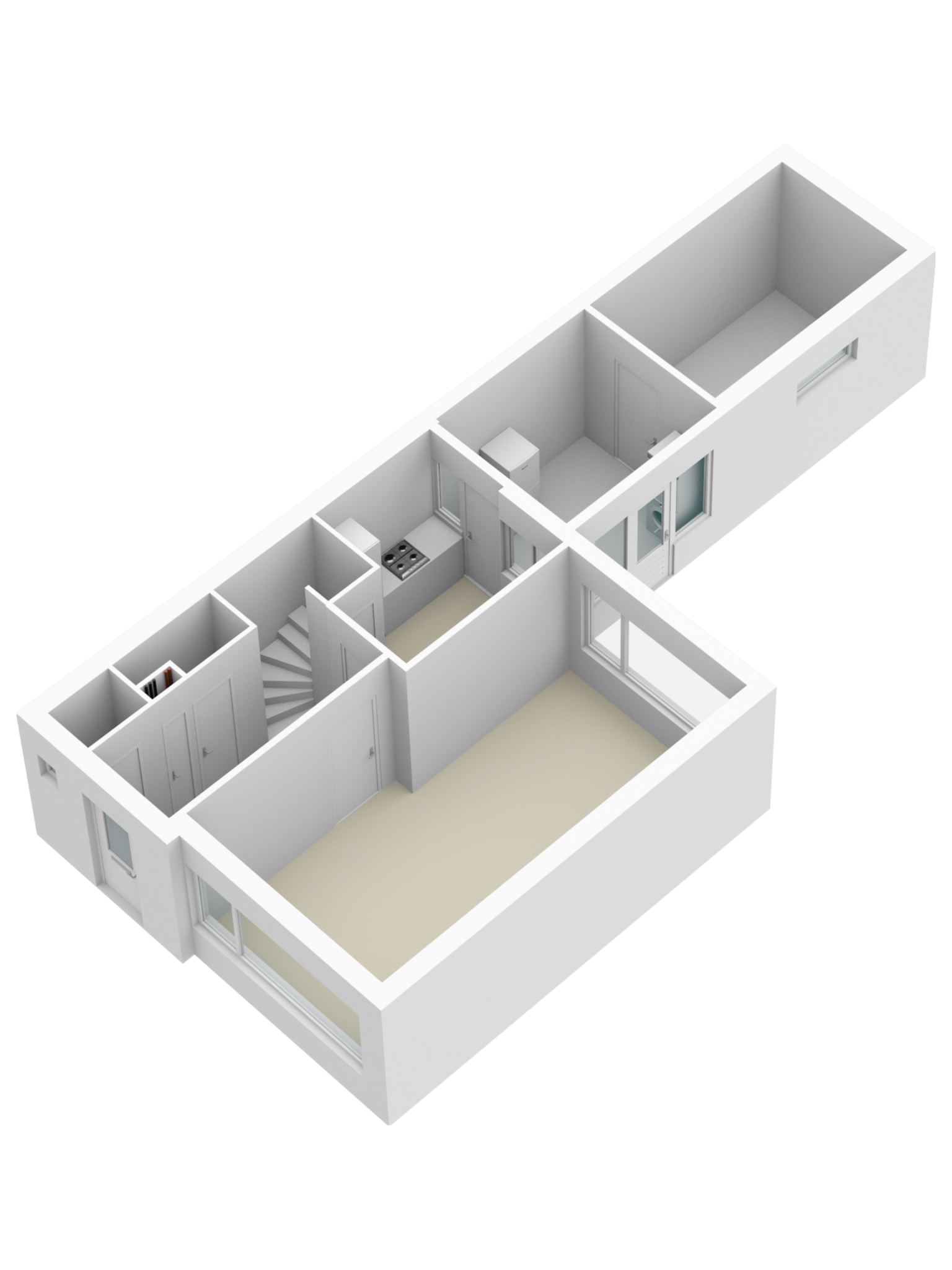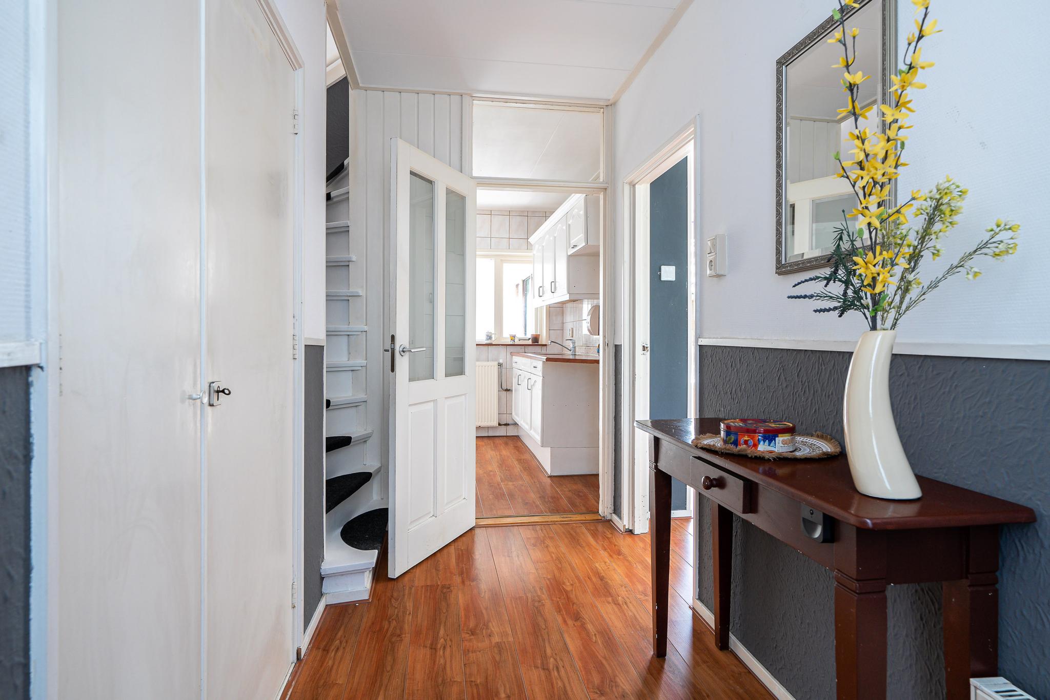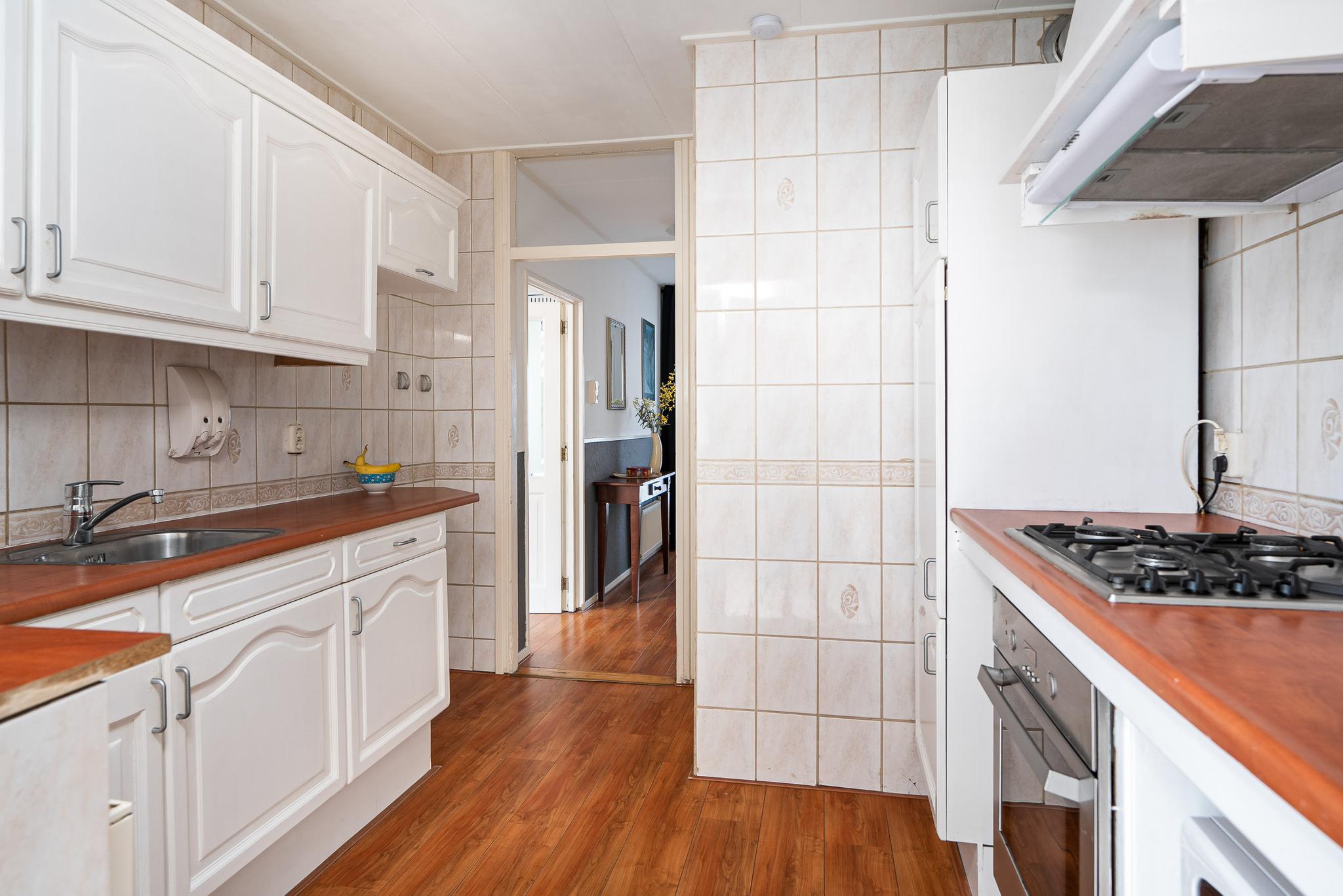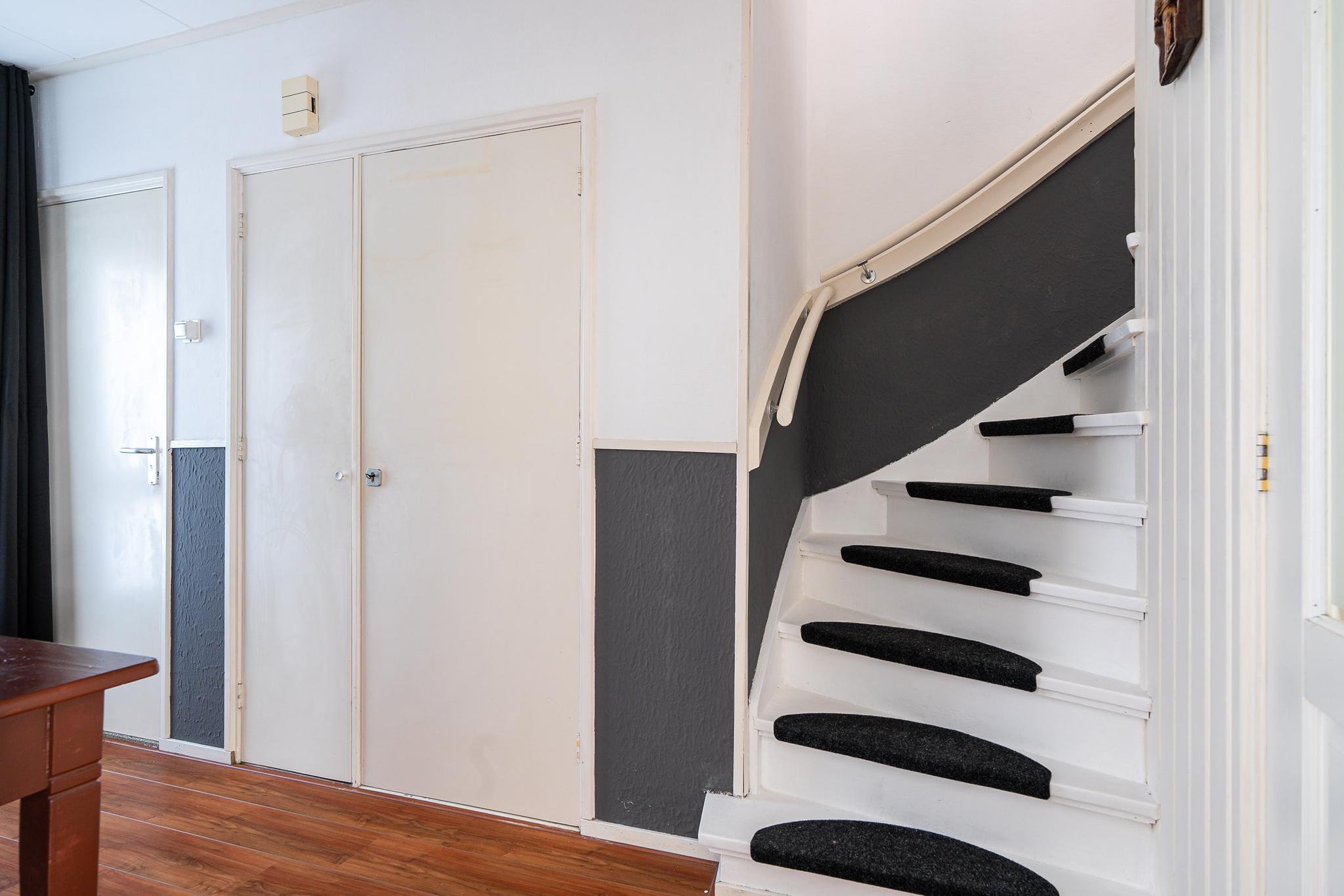 Indeling begane grond: Entree, hal met toilet, meterkast, bergkast en trapopgang, ruime woonkamer met veel natuurlijk lichtinval, dichte keuken voorzien van inbouwapparatuur, bijkeuken met achter-entree en toegang tot de aangebouwde berging.