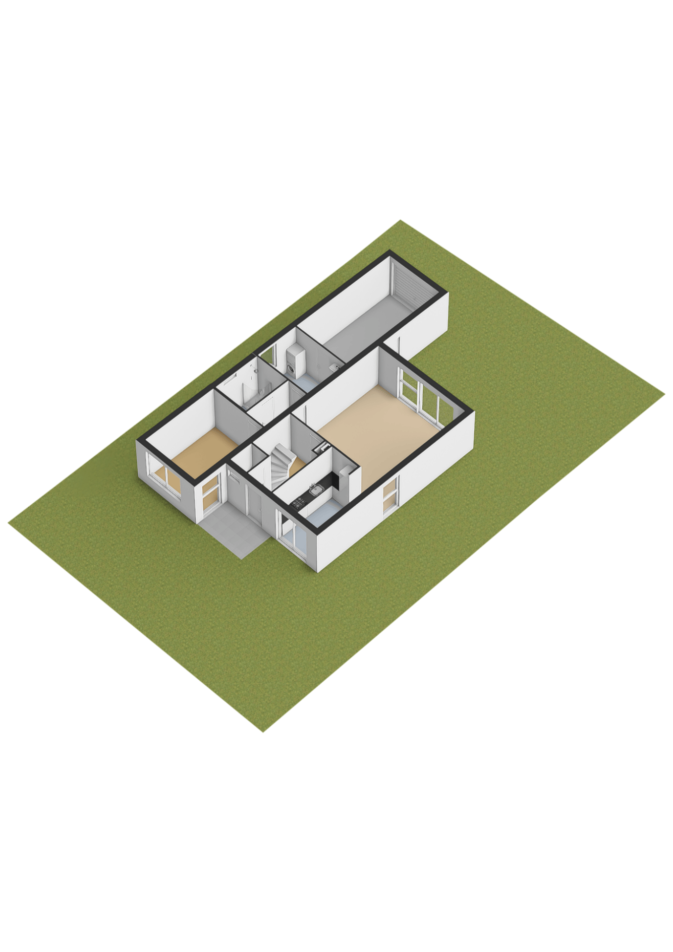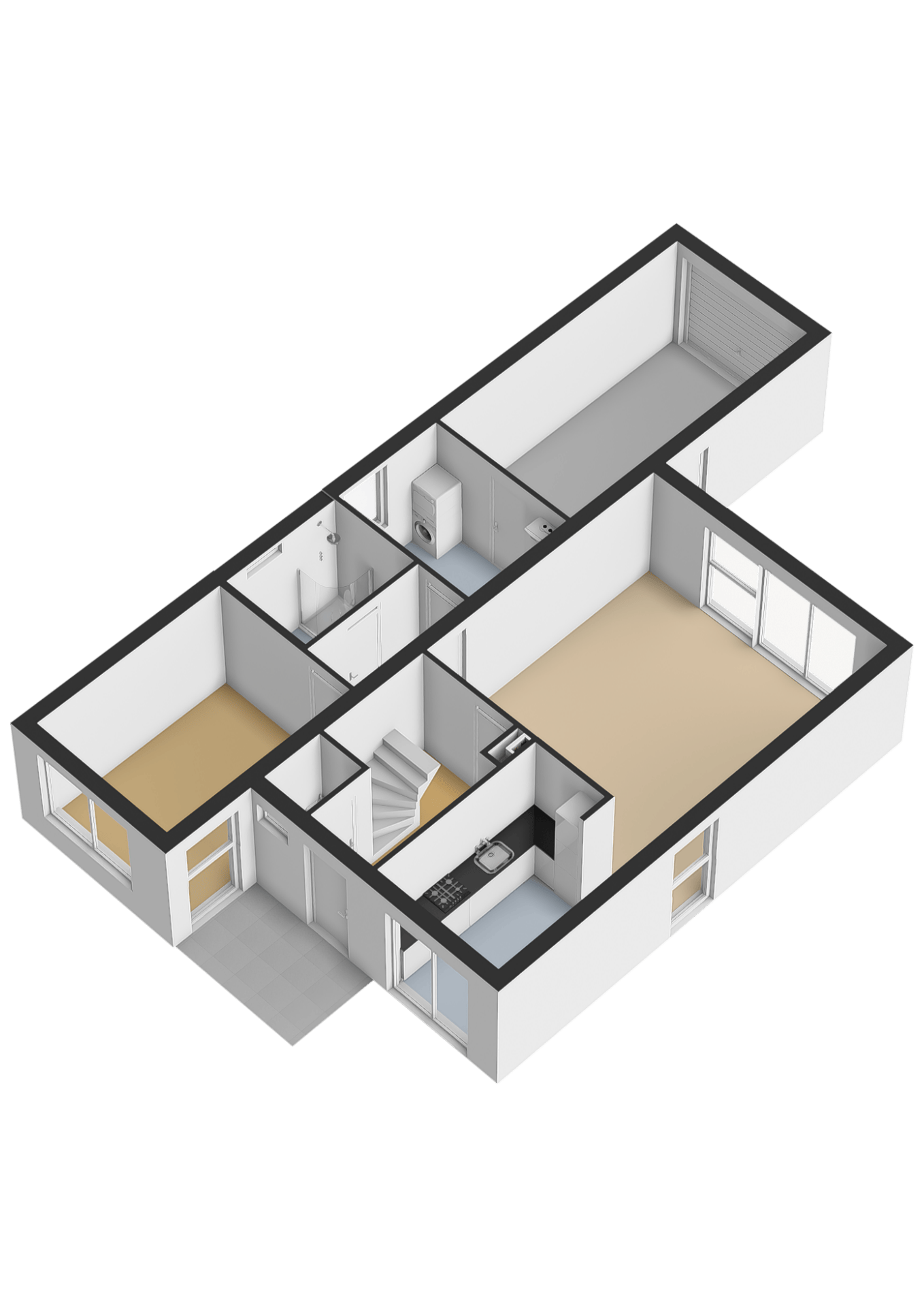 Op de begane grond bevinden zich tevens een slaapkamer en de badkamer, wat de woning geschikt maakt voor levensloopbestendig gebruik.