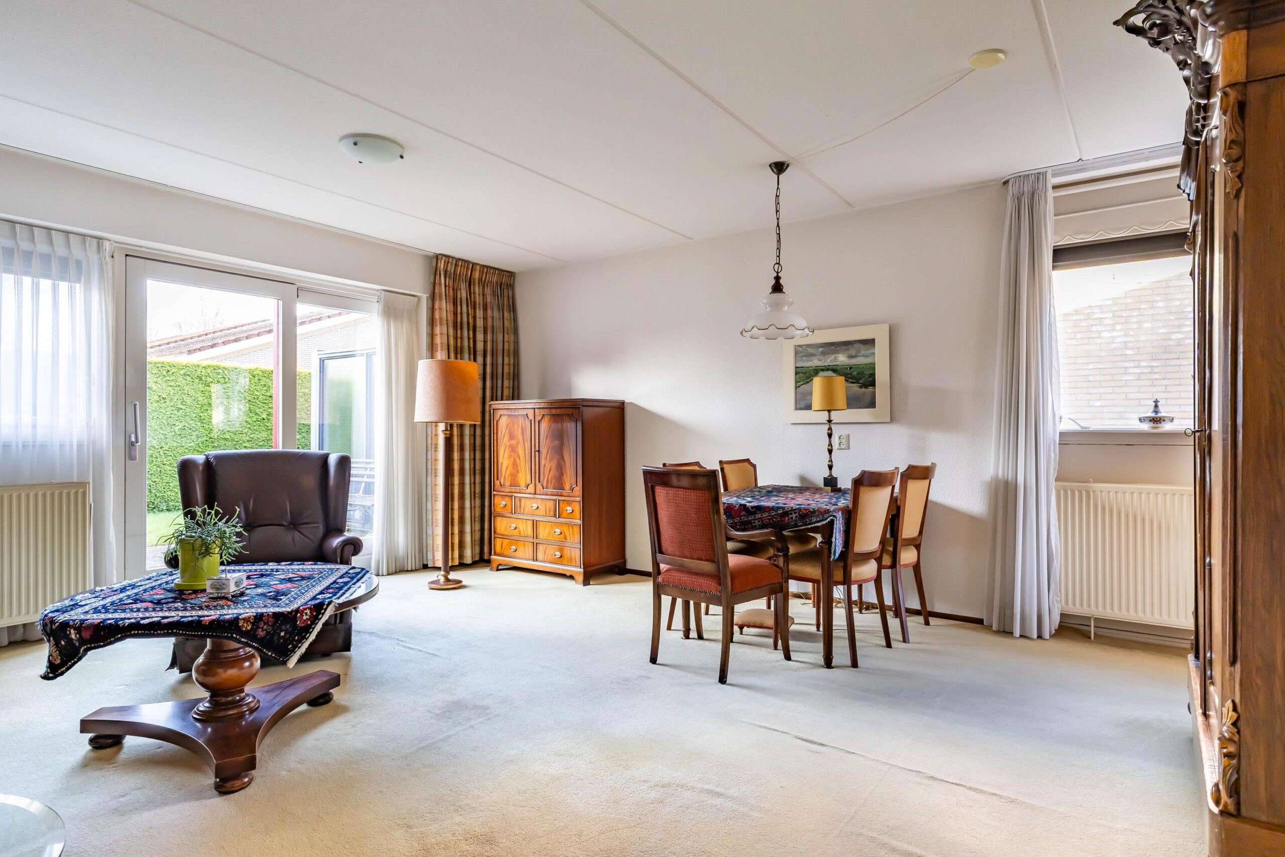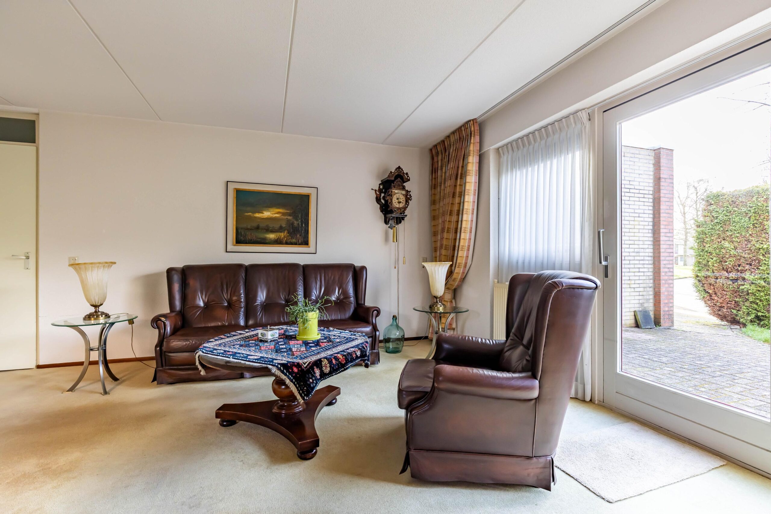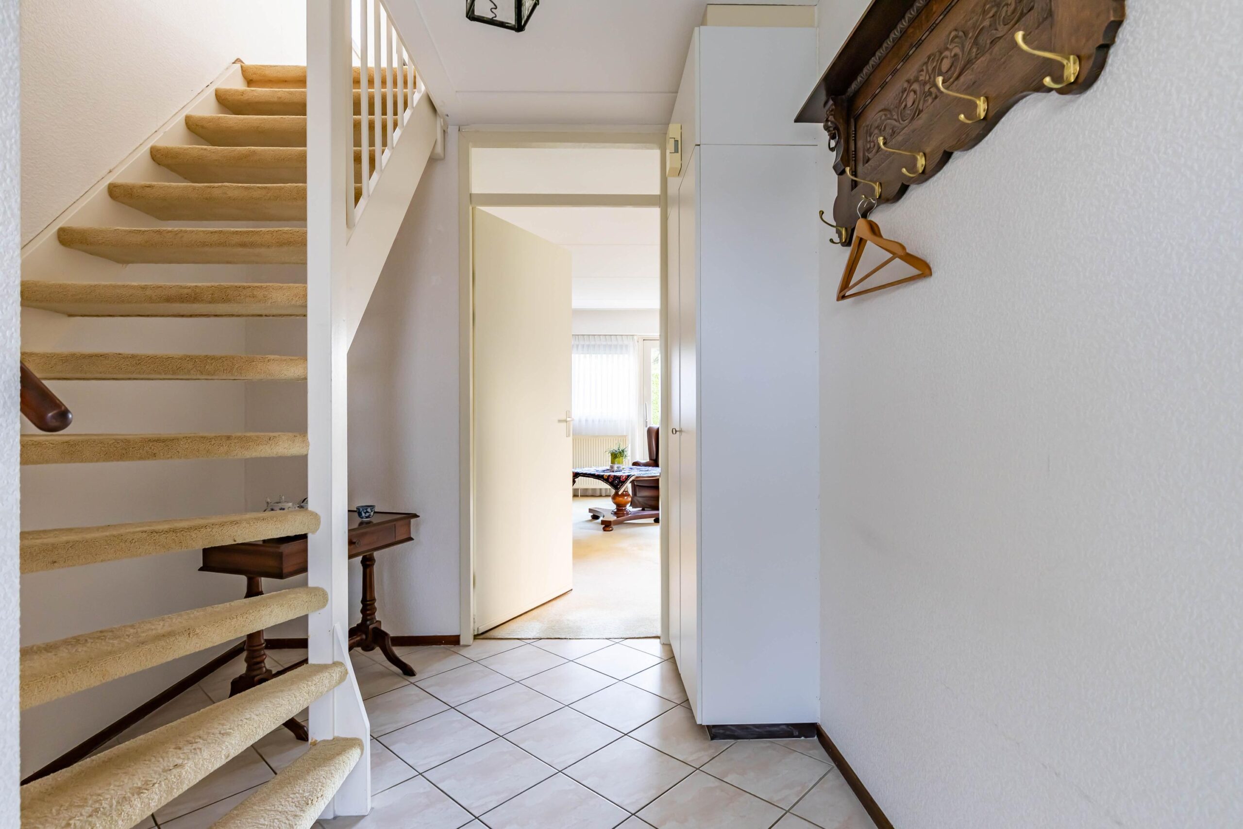 Via de entree komt u in de hal met meterkast en toiletruimte. Vanuit de hal loopt u door naar de woonkamer. De grote raampartijen zorgen voor een goede lichtinval en een prettig zicht op de tuin.