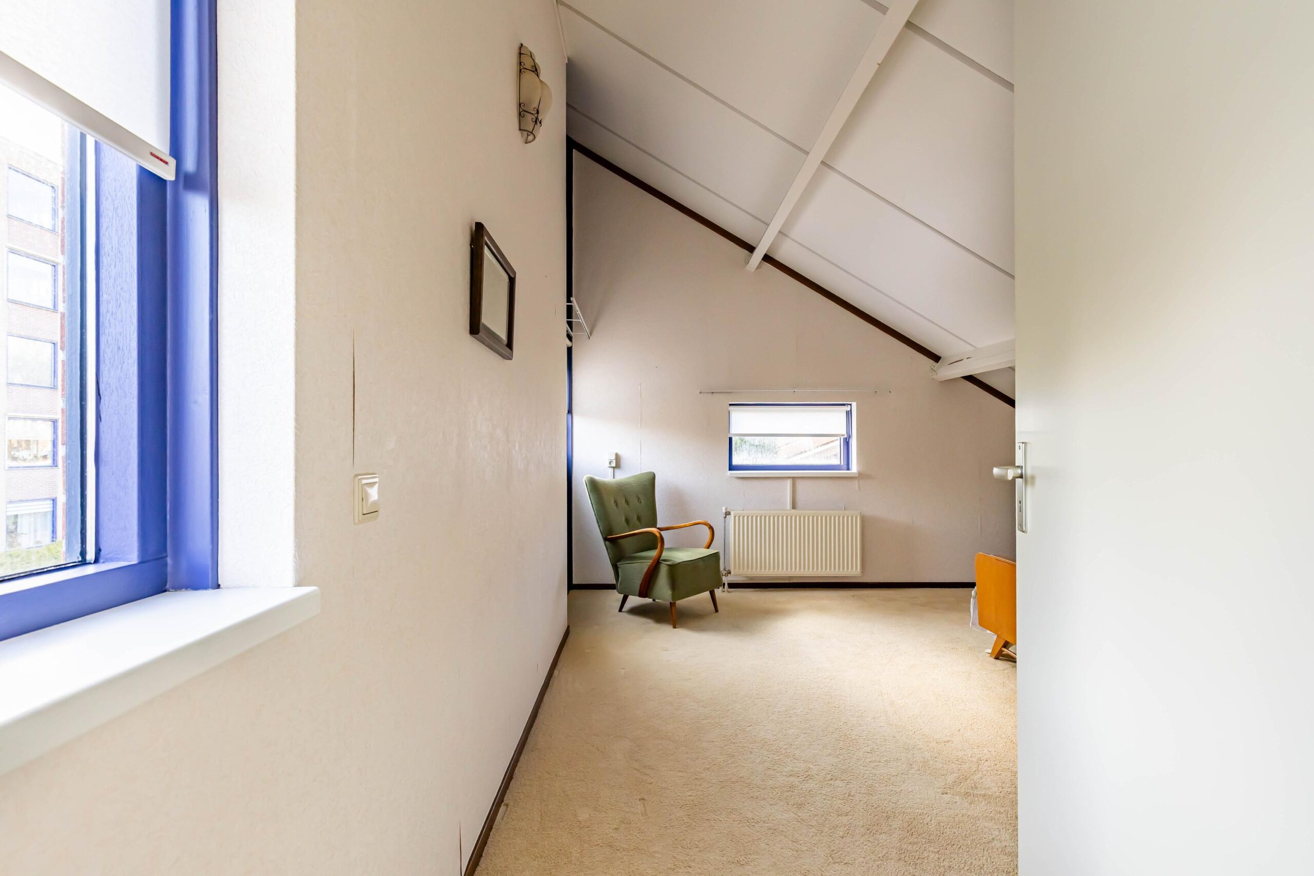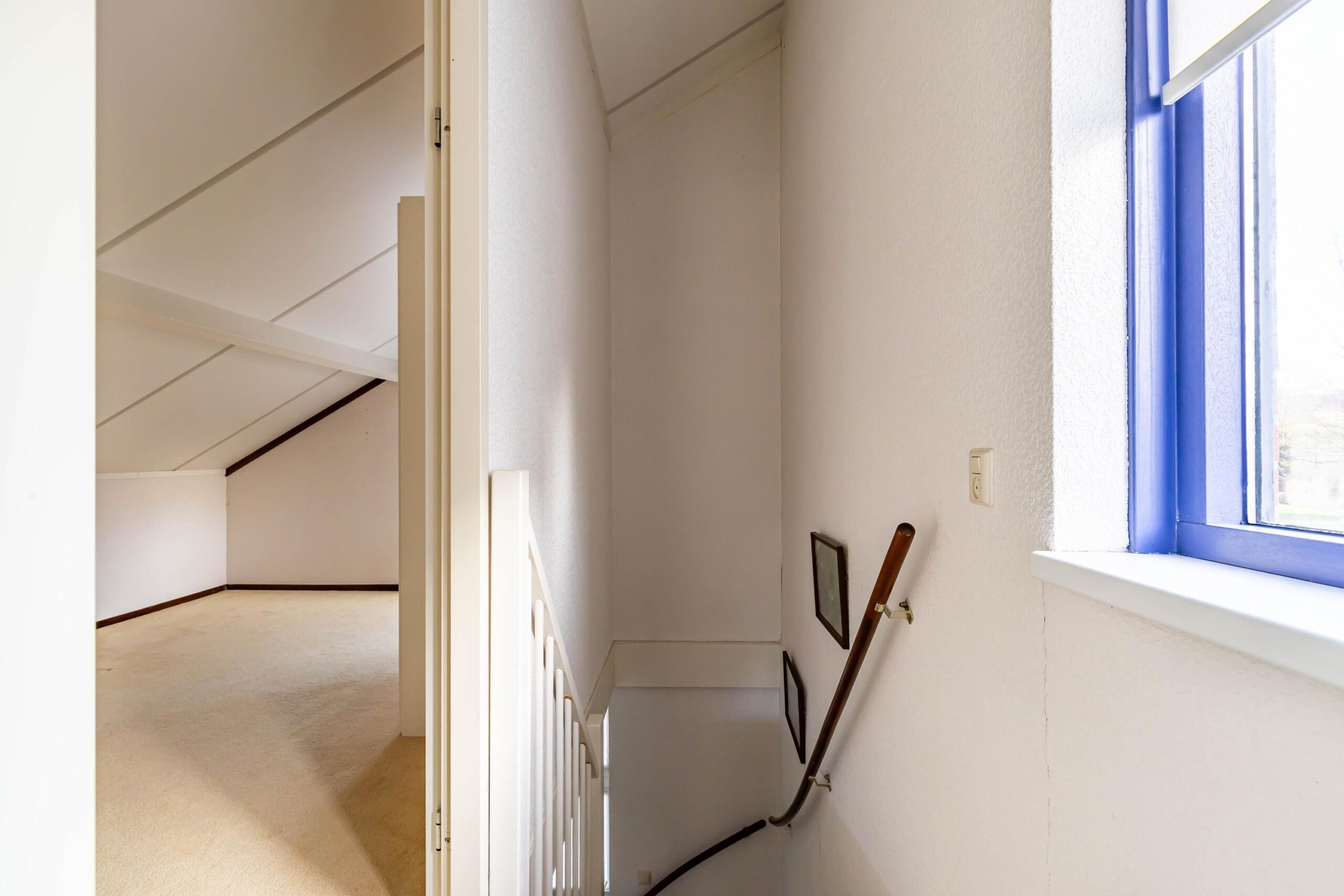 Overloop met toegang tot twee slaapkamers. Deze verdieping is geschikt voor logees, hobbyruimte of werken aan huis.