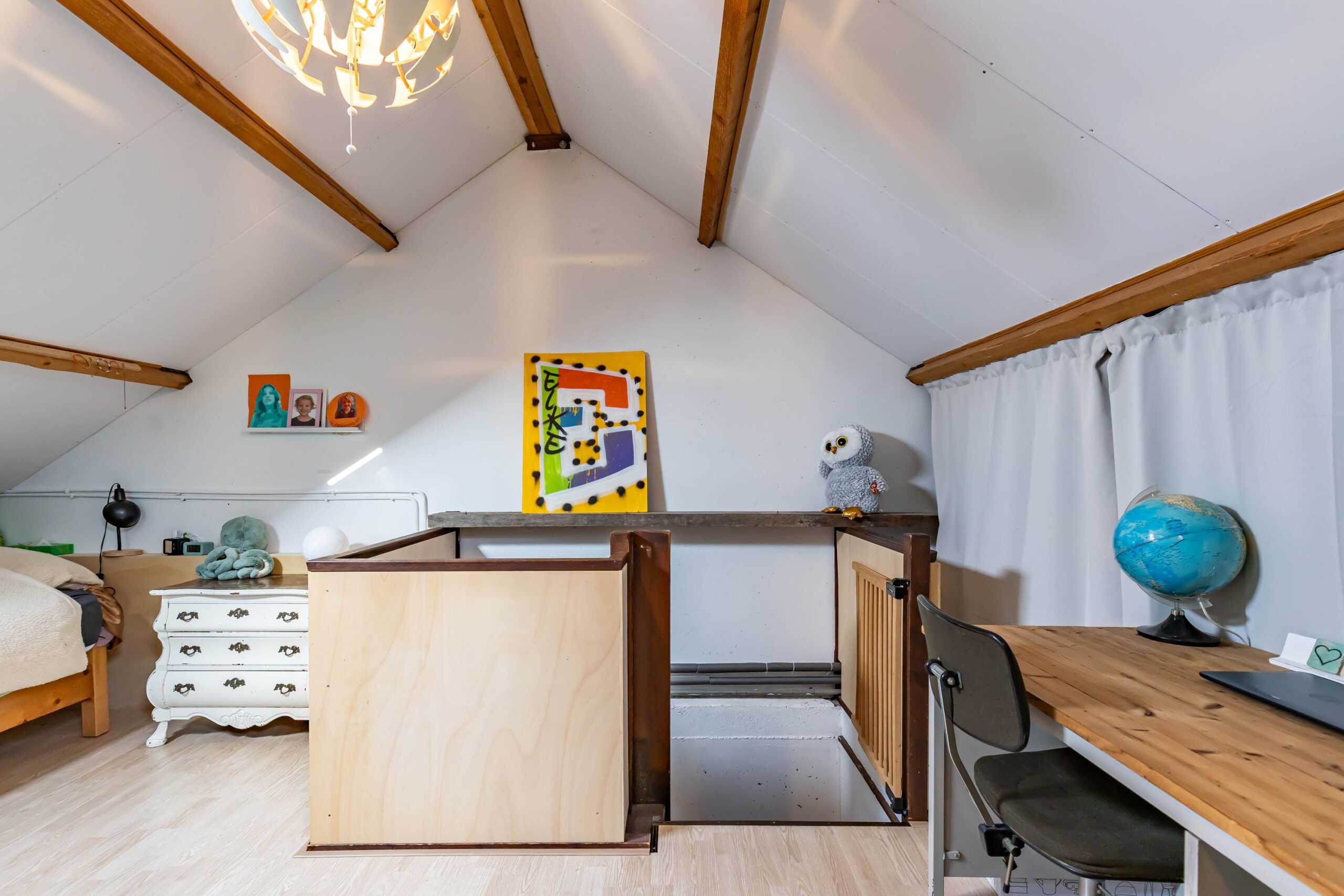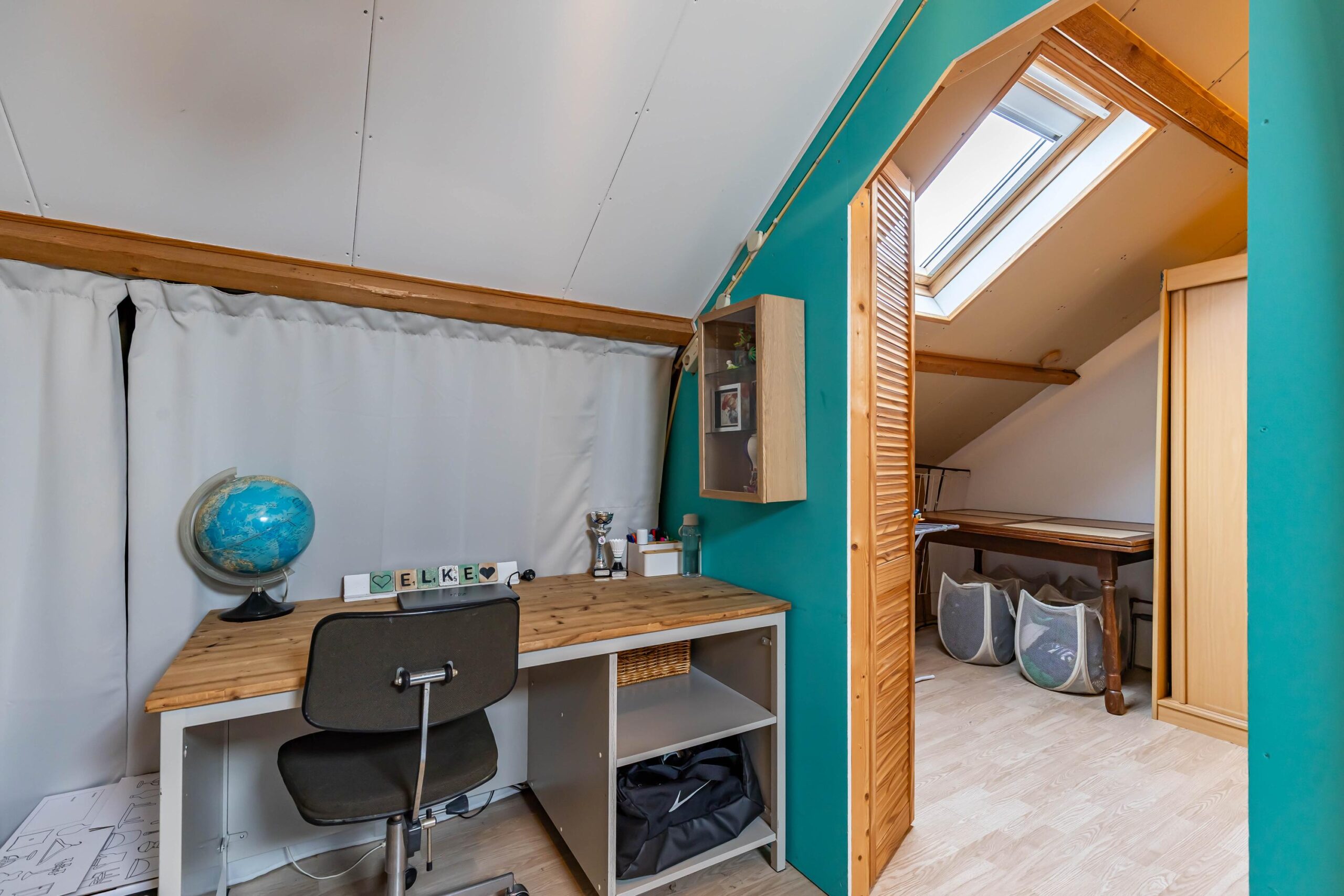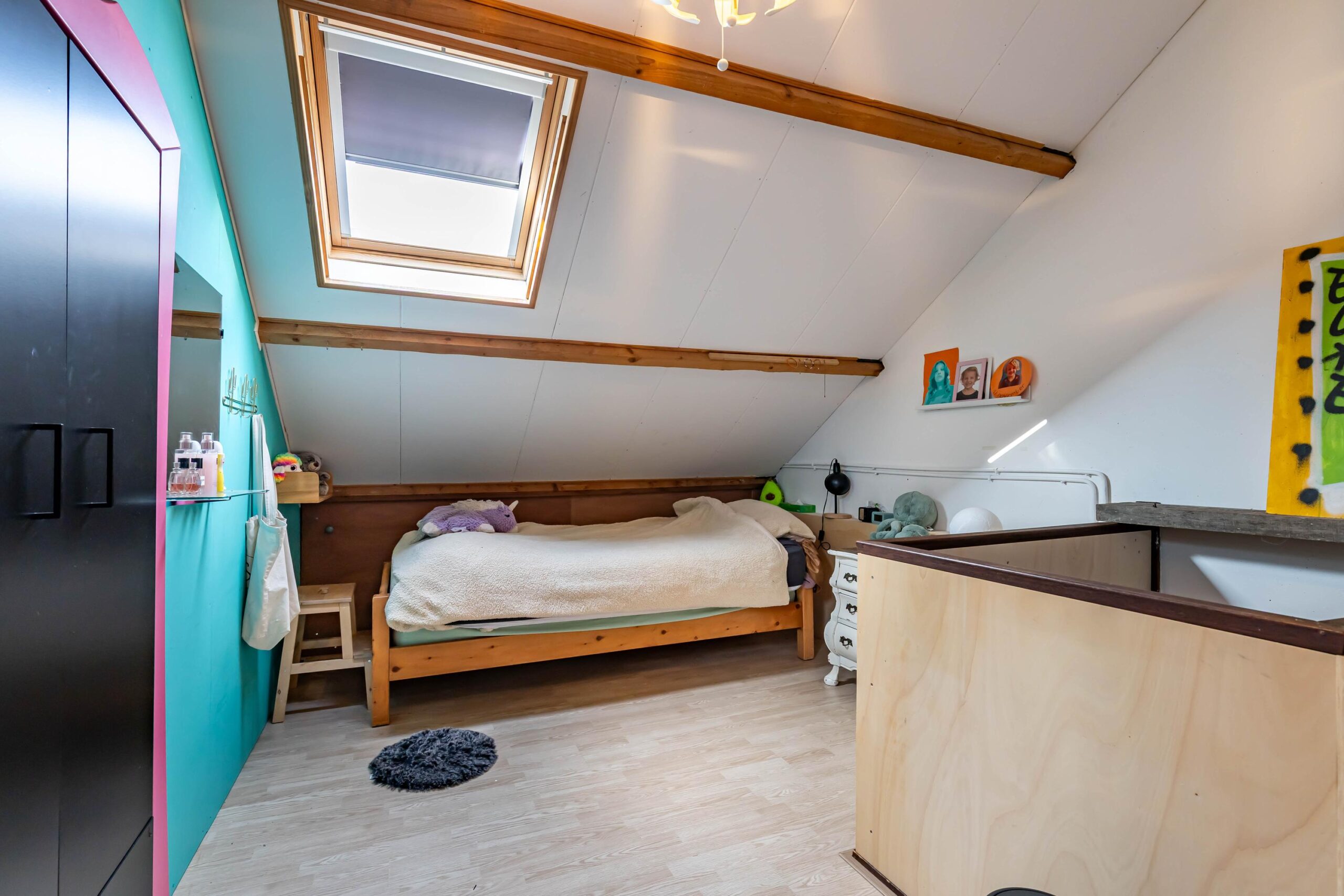 Via een vaste trap bereik je de zolderverdieping. Deze is praktisch ingedeeld in twee delen: een ruimte voor het witgoed en de cv-ketel en een tweede deel dat uitstekend geschikt is als extra slaapkamer, werk- of hobbyruimte. De aanwezige dakramen zorgen voor prettige lichtinval.